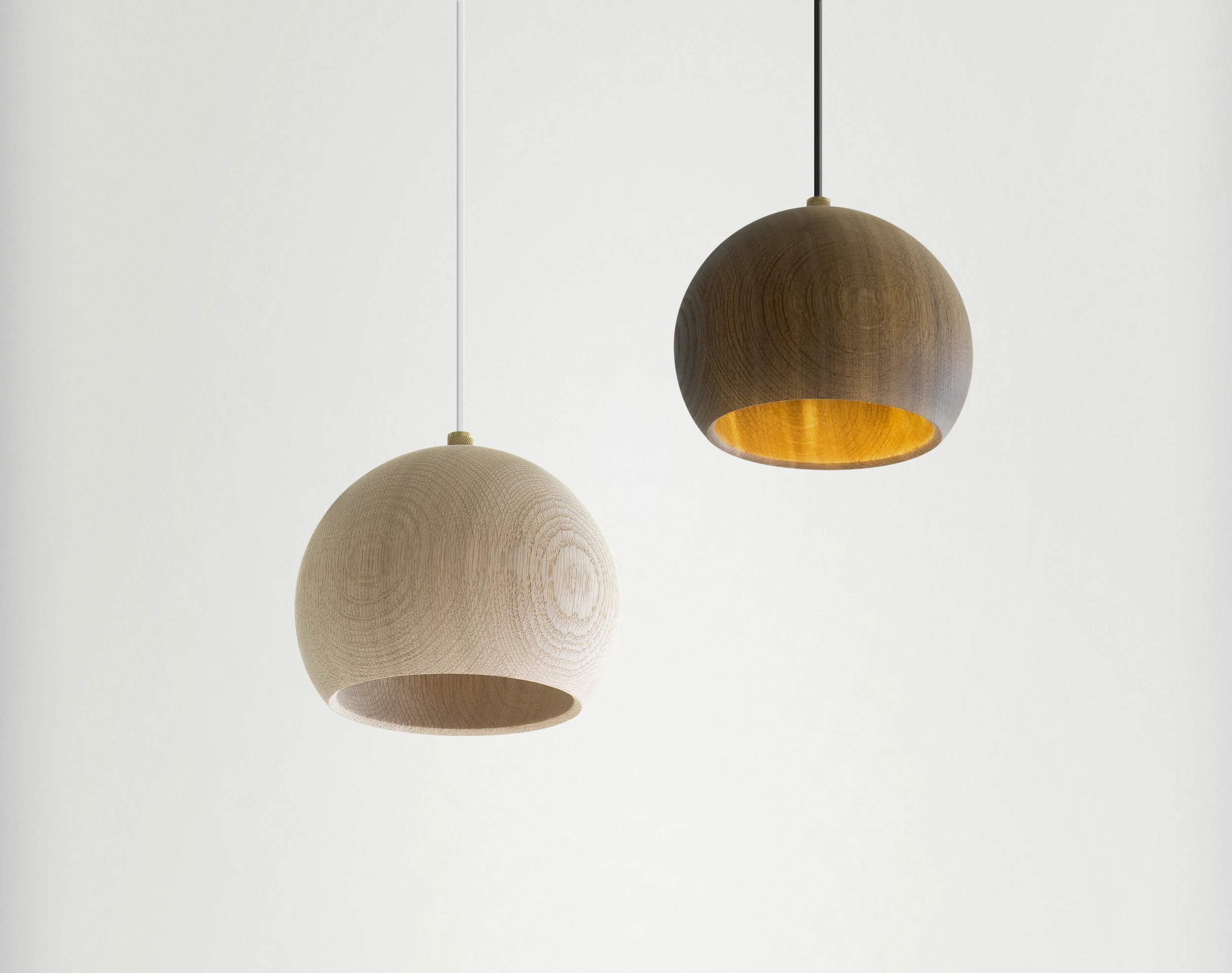 The Lune Pendant Lamp represents a fusion of woodcraft, material and modern technology and is inspired by a wood-turned object, in this case the sphere. The perfectly rounded shade made out of solid natural wood is beautifully contrasted by the contemporary LED light source. The result is a modern lamp with a tactile and welcoming feel. The Lune Pendant Lamp is available in smoky, linseed-oil-treated oak and in soap-treated oak.